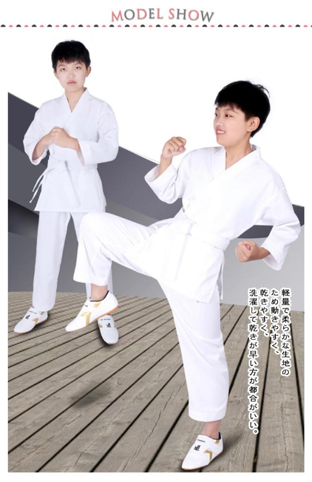 | 【空手着3点セット】【100〜180cm】 入門者向けの空手着 上下白帯 3点セット 上着とパンツ、白帯がセットになっているので、これから空手を始めてみたい人、試しに習ってみたい人におすすめ。 通気性、快適性、耐変形・耐摩耗性、柔らかな生地、手触りにも優れています。 パンツのウエストはゴムと紐仕様で子供でも履きやすい 軽量で柔らかな生地のため動きやすく、乾きやすく、洗濯して乾きが早い方が都合がいい。 【使用対象】学校の授業用・小学生初心者・合気道初心者用として最適です。 | |