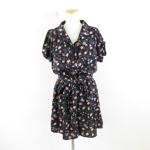 【中古】ヘザー Heather オールインワン サロペット ショートパンツ 半袖 花柄 紺 ピンク F *A370 レディース