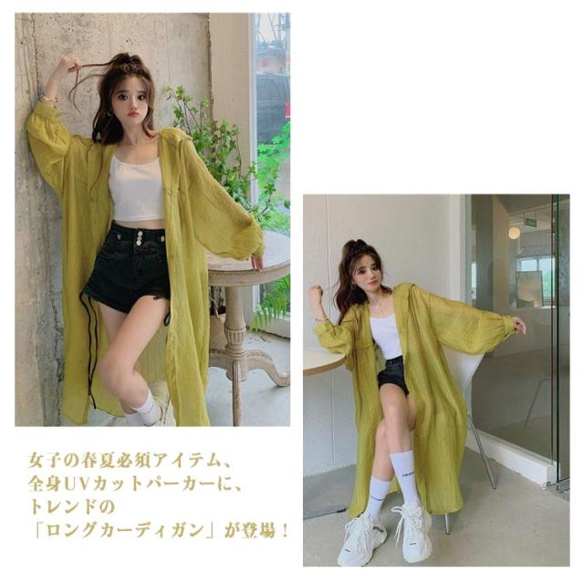 長袖 フード付き レディース 薄手 パーカー ロング UVカット 体型カバー 夏 カーディガン 羽織り UVケア 涼しい UVカット 冷感 おしゃれ アイスシルク 通勤 通学 UV対策 紫外線対策 OL オフィス 海 冷房対策 吸汗 速乾 日焼け防止服 お出かけ 夏