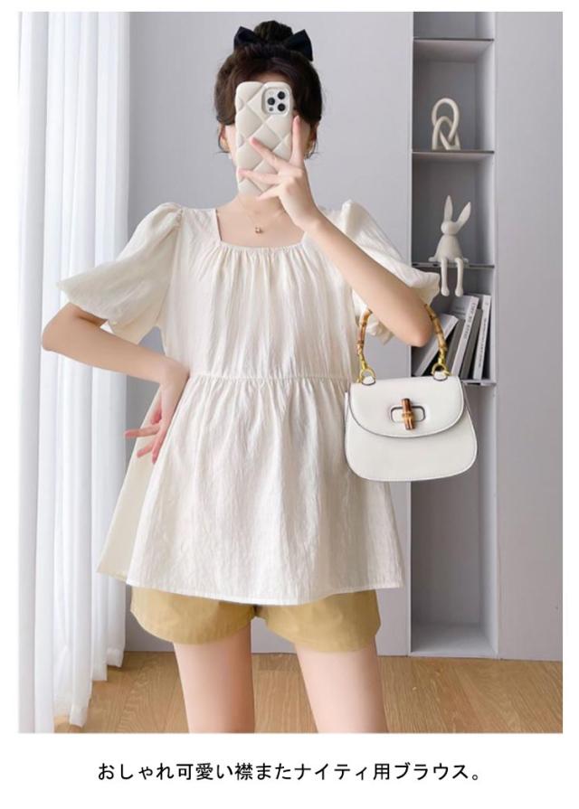 | おしゃれ可愛い襟またナイティ用ブラウス。 吸汗・速乾に優れたポリエステル混紡の生地を使用。やわらかな風合いとさらりとした肌触りも兼ね備えたなアイテムです ふんわりとしたaラインだから体型カバーできる。 身幅に余裕を持たせたデザインでゆったりと着用していただけます ボトムスも選ばず、産前産後兼用の優秀トップス | |