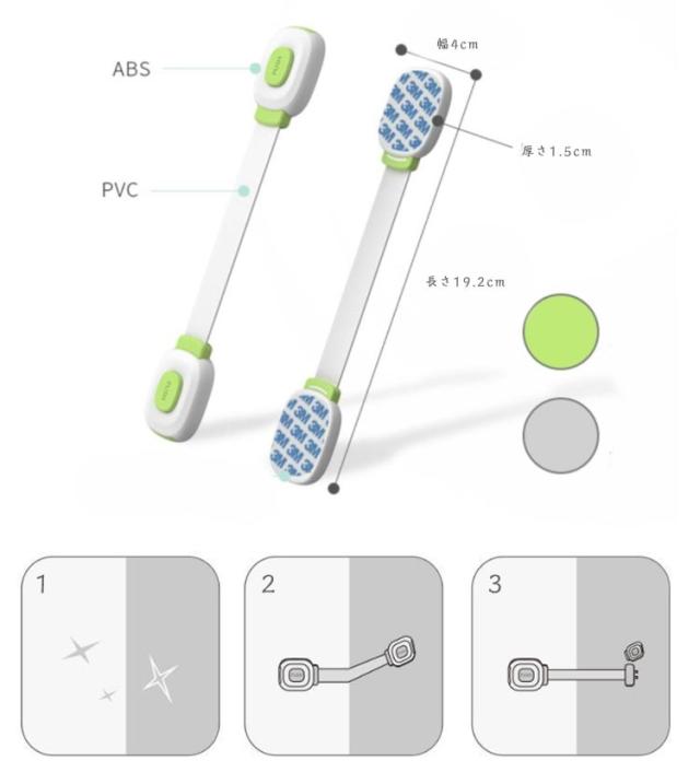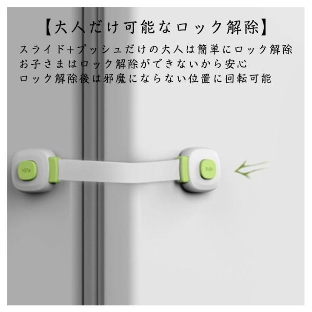 | お子さまのケガを防止 勝手に引き出しやドアを開けるなどの事故を防ぐ キッチンや玄関など様々なお部屋で使える 【大人だけ可能なロック解除】 スライド+プッシュだけの大人は簡単にロック解除 お子さまはロック解除ができないから安心 ロック解除後は邪魔にならない位置に回転可能 【簡単長さ調節】 ベルトの長さはハサミで切るだけ 引き出しの大きさ等に合わせて調節できて便利 【貼り付けるだけの簡単設置】 工具不要で強力な両面テープで貼り付けるだけ お子さまが引っ張っても剥がれない強力テープ | |