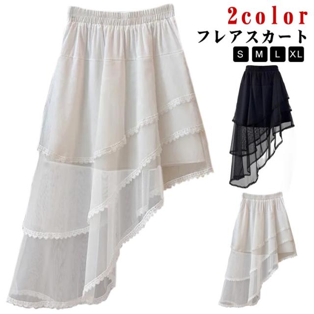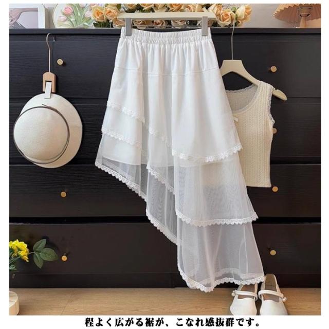チュールスカート アシンメトリー モノトーン フリル Aライン フレアスカート 個性的 変形 レイヤード レイヤード スカート 病み マキシ丈 ドレープ ロングテール ロングスカート チュチュスカート