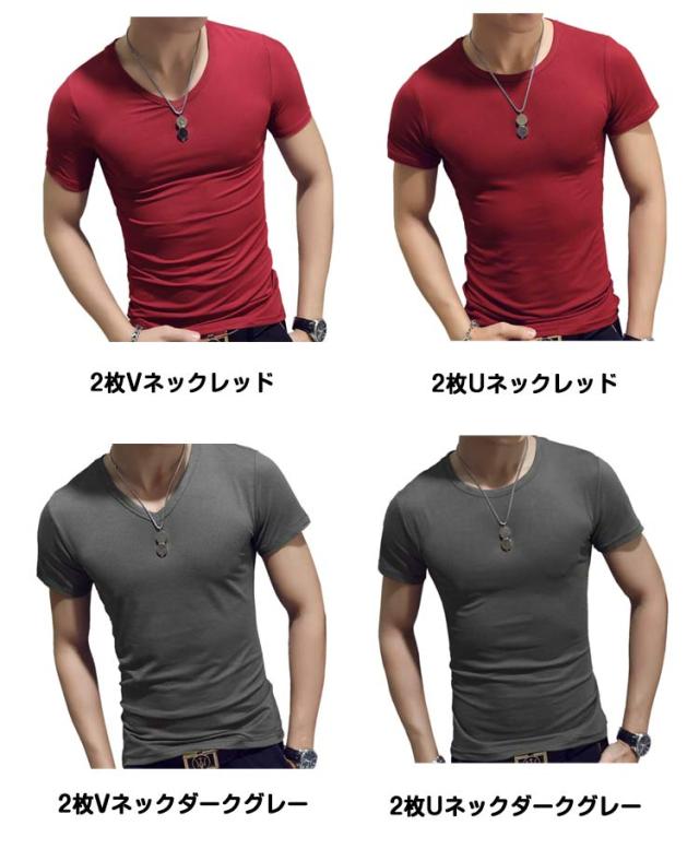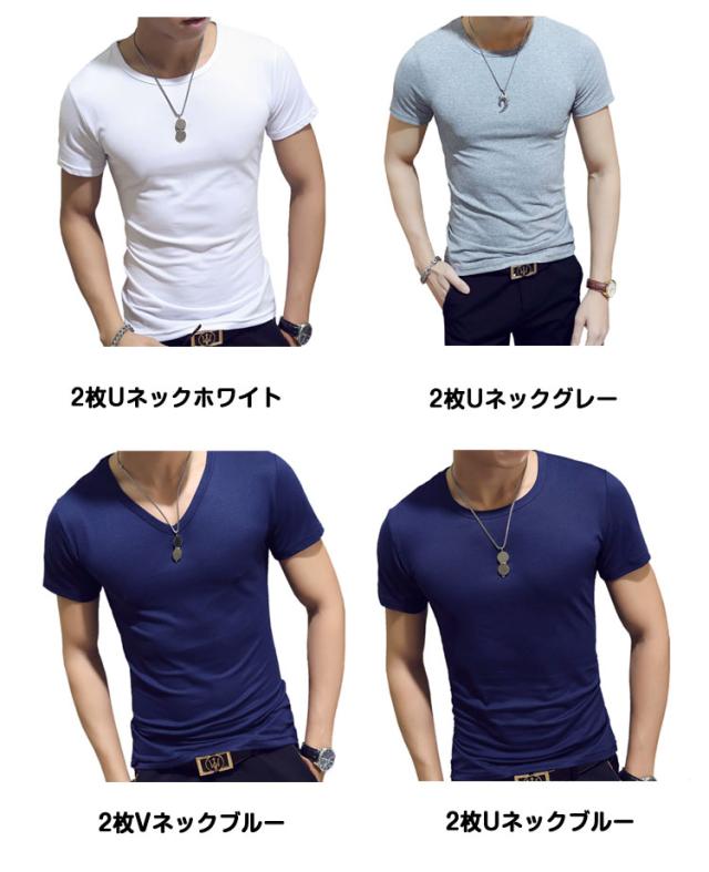 男性用 定番 下着 Uネック Vネック 白 春 Tシャツ メンズ 夏 半袖シャツ インナーシャツ 丸首 大きいサイズ 2枚 アンダーシャツ 肌着 インナーシャツ クルーネック 黒 無地 紳士 シンプル オフィス 仕事 薄手 ひんやり