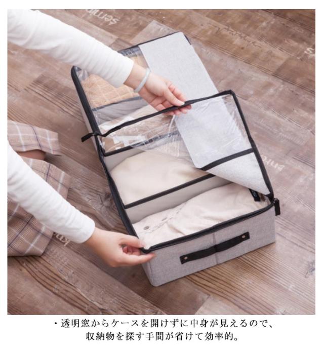 | ・ソファ&ベッド下収納ケース ・透明窓からケースを開けずに中身が見えるので、収納物を探す手間が省けて効率的。 ・オフシーズンの衣類や靴はもちろん、おもちゃや雑貨、デイリーに使う物まで、用途を選ばず収納いただけます。 | |