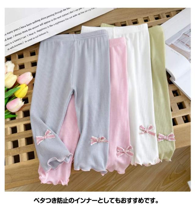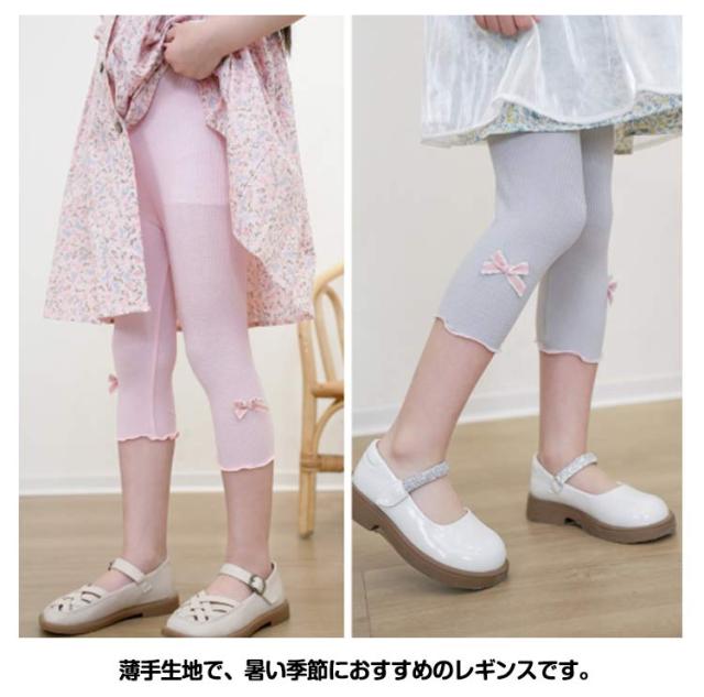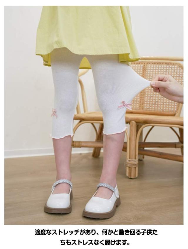 | 【2枚セット】 かわいいフリル裾×リボンデザイン!ひんやり爽やかな履き心地、キッズ用七分丈レギンスです。 薄手生地で、暑い季節におすすめのレギンスです。 さらっとなめらかな肌ざわりで、気持ちいい履き心地です。 接触冷感、吸汗速乾機能を備えています。 適度なストレッチがあり、何かと動き回る子供たちもストレスなく履けます。 デイリー使いはもちろん、スポーツにも使えます。 ベタつき防止のインナーとしてもおすすめです。 | |