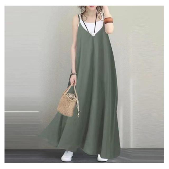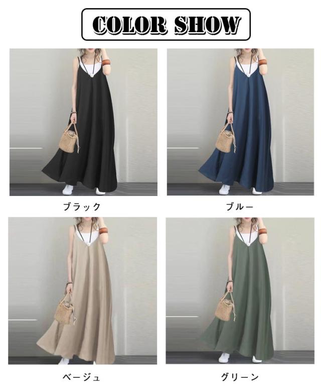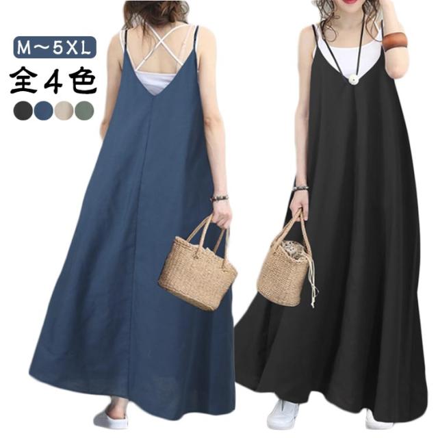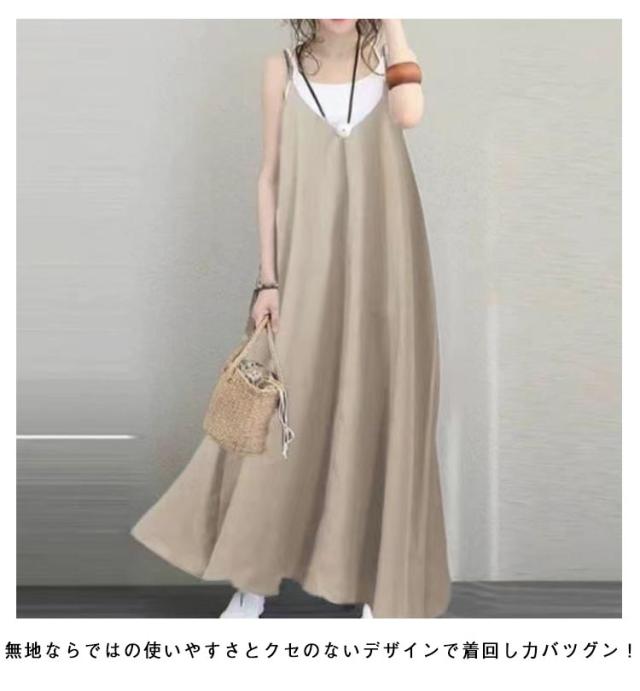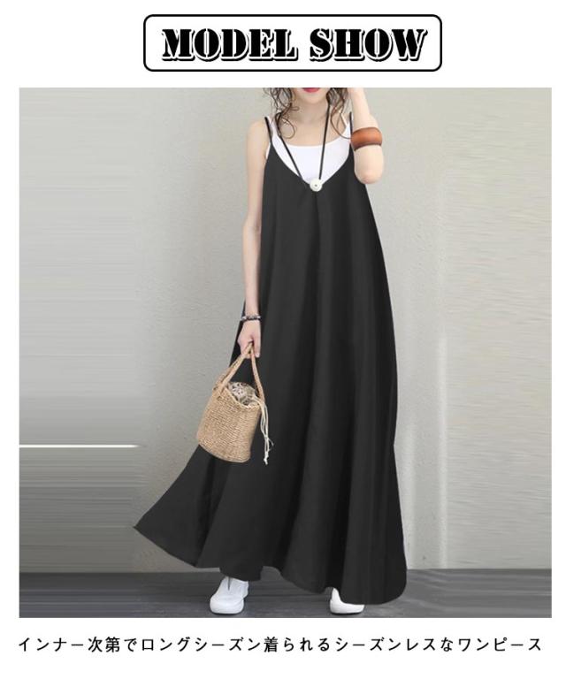 Aライン キャミワンピース レディース 着回し 大きいサイズ 高身長 重ね着 キャミソール ワンピース ロングワンピース ロング丈 ノースリーブ キャミソールワンピース レイヤード ロング ショルダーストラップ調節可能 キャミワンピース 無地 低身長 シンプル