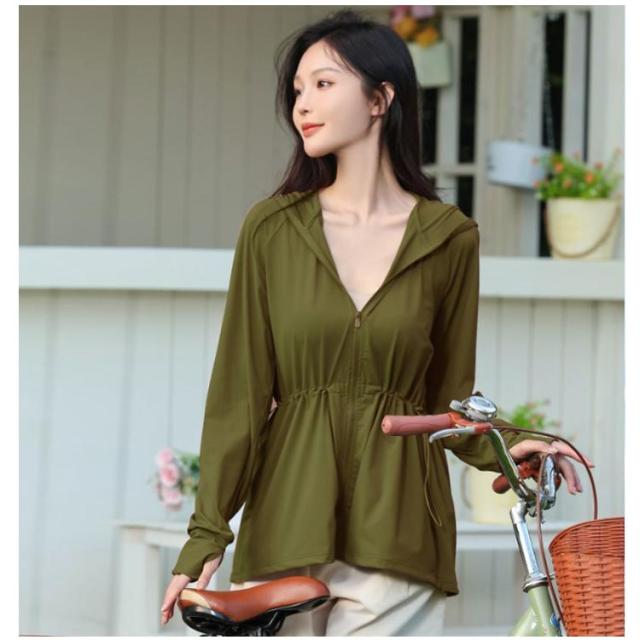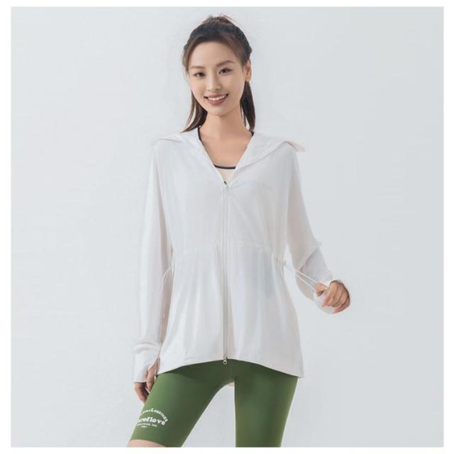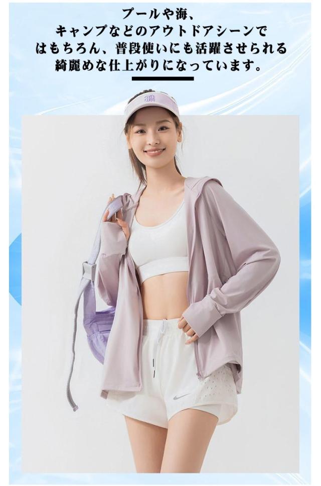 ラッシュガード 指穴付き ラッシュガード トップス 夏 薄手 ラッシュガード UVカット ラッシュパーカー 秋 ウエストストリング パーカー 伸縮性 UPF50+ 日焼け防止 フード付き フルオープンジップ 体型カバー フィットネス ドノバン
