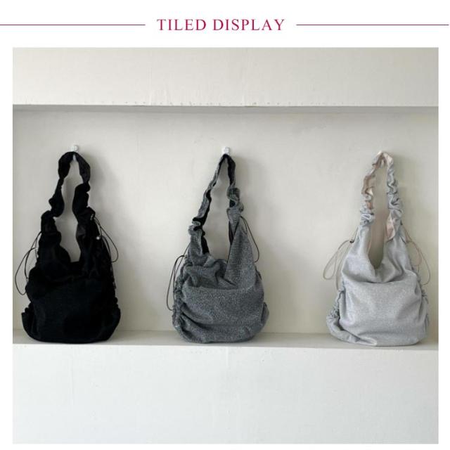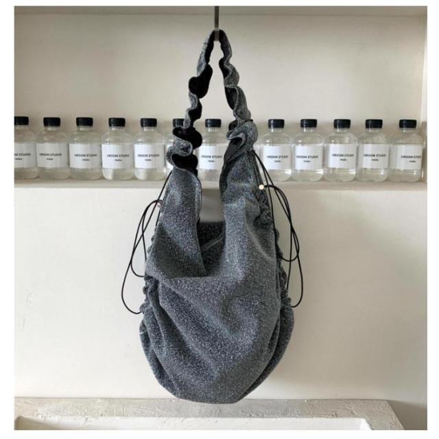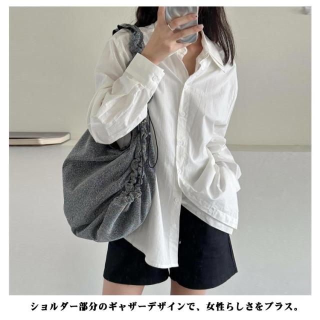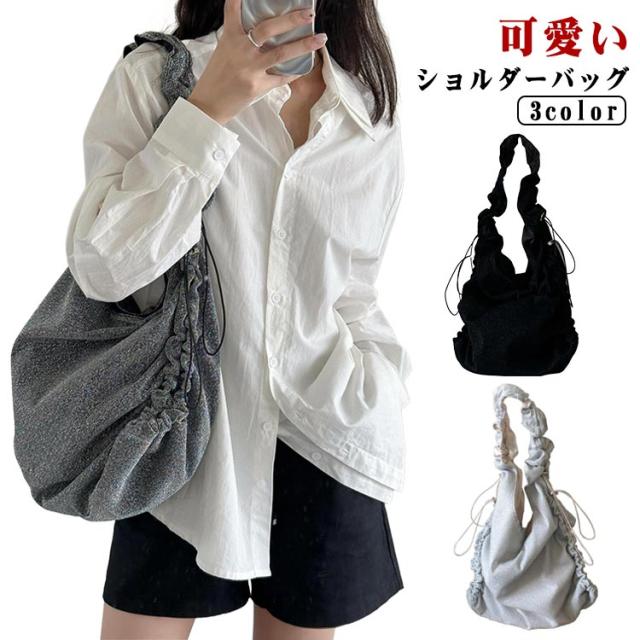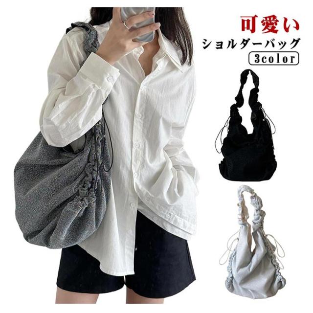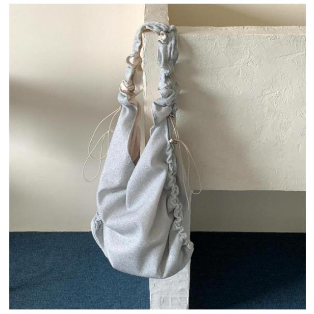 トートバッグ ギャザーハンドルバッグ フリル くしゅくしゅ ショルダーバッグ バッグ 斜めがけ ギャザー ワンショルダー バッグ マザーズバッグ ショルダーバッグ フリルハンドル トートバッグ レジャー 可愛い シルバー グレー