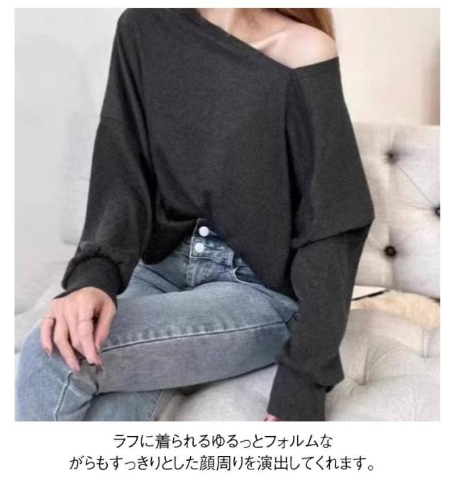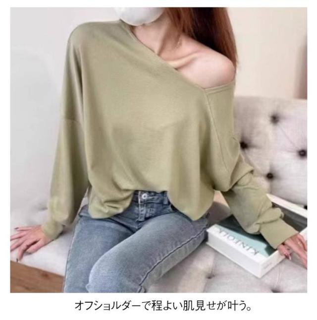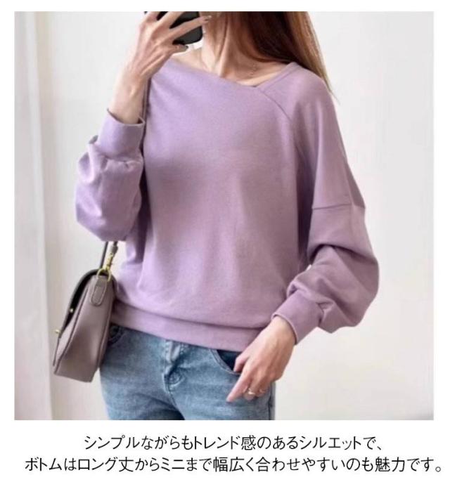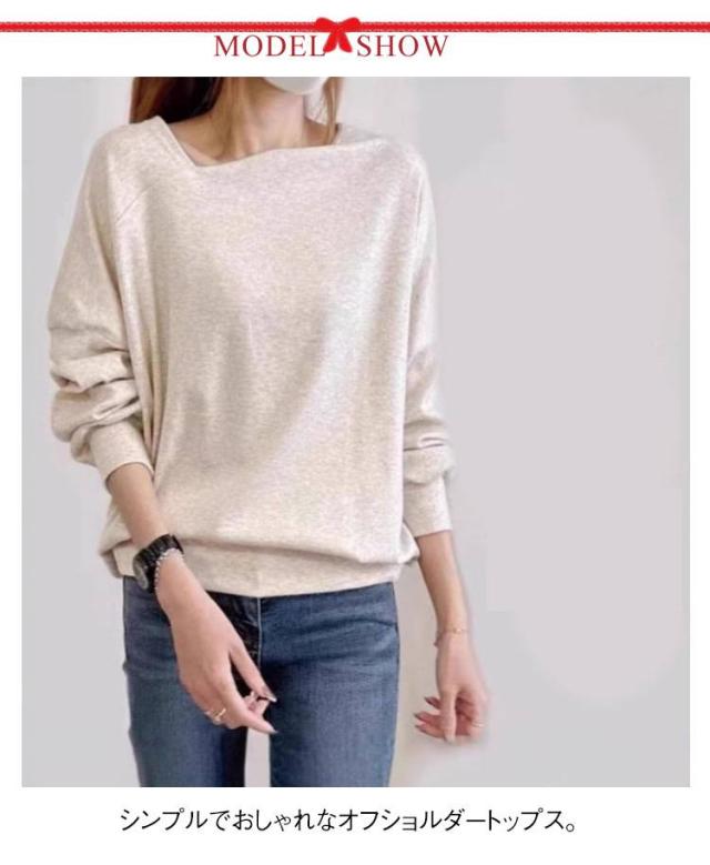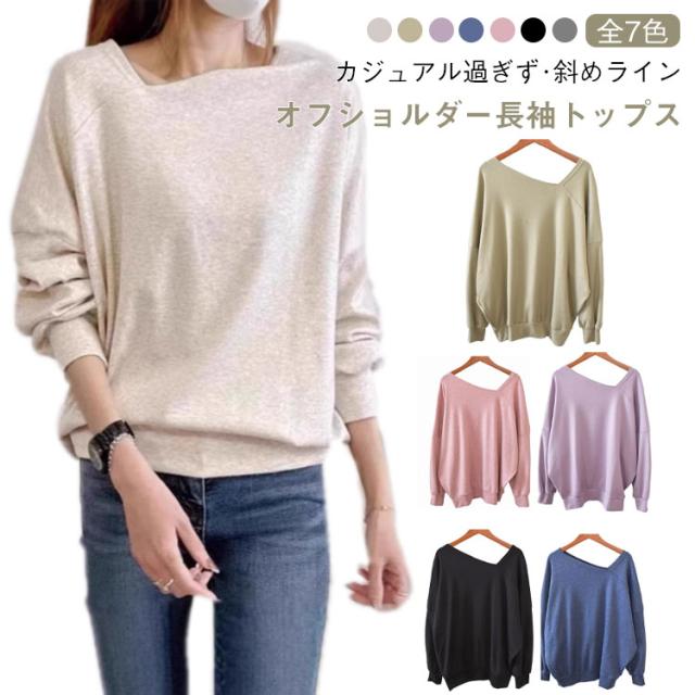 長袖 春服 レディース 長袖トップス オフショルダートップス Tシャツ 斜めネック オフショル プルオーバー トレーナー ゆったり 可愛い 全7色