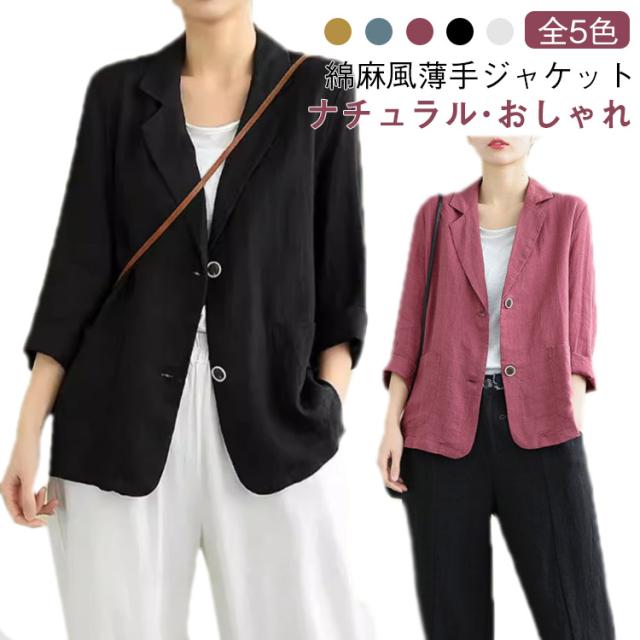 カジュアル アウター ジャケット スーツジャケット レディース 日焼け防止 テーラードジャケット コットン 長袖 スーツジャケット 春 夏 秋 大きサイズ