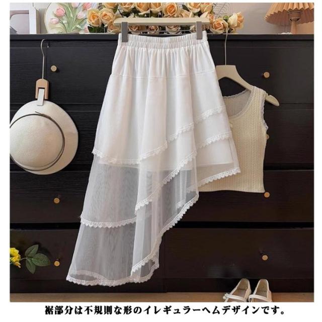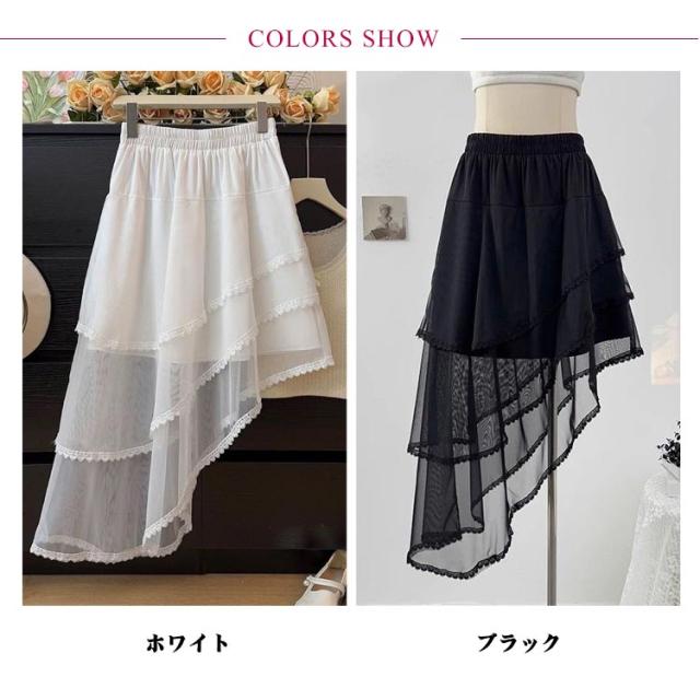 レイヤード 個性的 フレアスカート スカート レイヤード アシンメトリー チュールスカート フリル 変形 Aライン モノトーン 病み マキシ丈 ドレープ ロングテール ロングスカート チュチュスカート