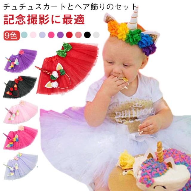 出産祝い ヘア飾り ハーフバースデイ ベビースカート 寝相アート 2点セット 新生児 1歳 ベビーチュチュ コスチューム チュチュスカート 百日祝い スカート 100日祝い 撮影 おしゃれ チュチュスカート ギフト ふわふわ ふんわり かわいい