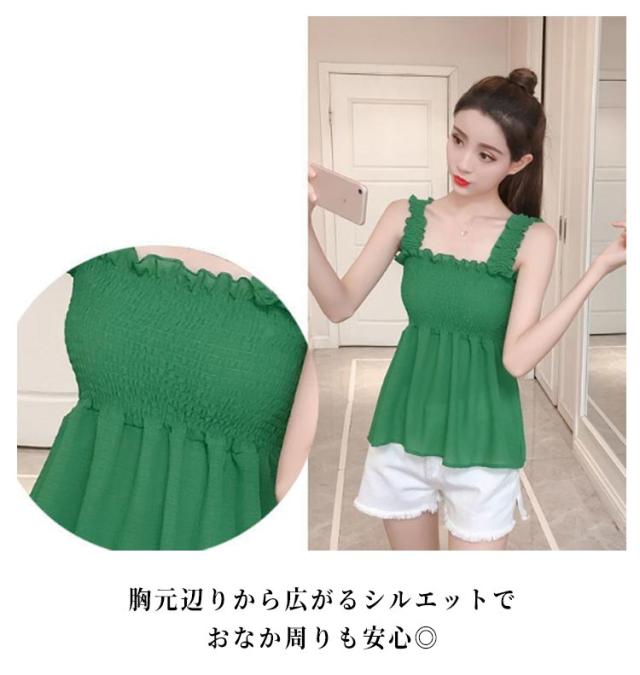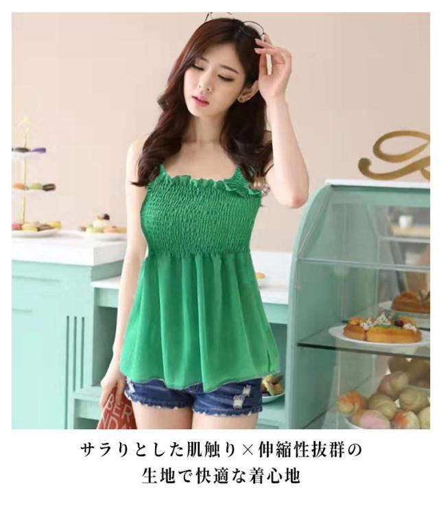 タンクトップ 体型カバー キャミ フリル トップス 重ね着 ピンク キャミソール お尻が隠れる レイヤードキャミソール レイヤード インナー 付け裾 裾フレア レイヤード チュニック フレア 体型カバー フリル グリーン ホワイト