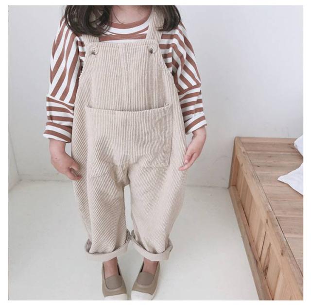 サロペット 子供 子供服 パンツ オーバーオール 可愛い キッズサロペット 男の子 オールインワン 女の子 コーデュロイ キッズ ロングパンツ キッズサロペット ゆったり つなぎ 春 秋 コットン 無地 重ね着 幼児 幼稚園 保育園 ベージュ