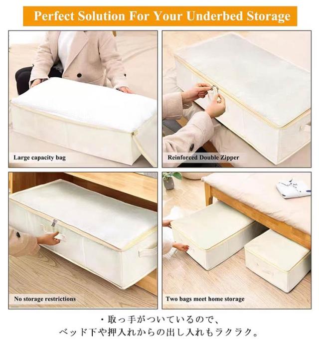 | ・ソファ&ベッド下収納ケース ・ベッド下に入る薄型でスペースを活用 ・衣類やおもちゃなどの細々したものをすっきり収納できる、使い勝手が良い収納ケースが登場しました。 ・取っ手がついているので、ベッド下や押入れからの出し入れもラクラク。 ・使わない時も折り畳むことができ、コンパクトで省スペースとなります。 | |
