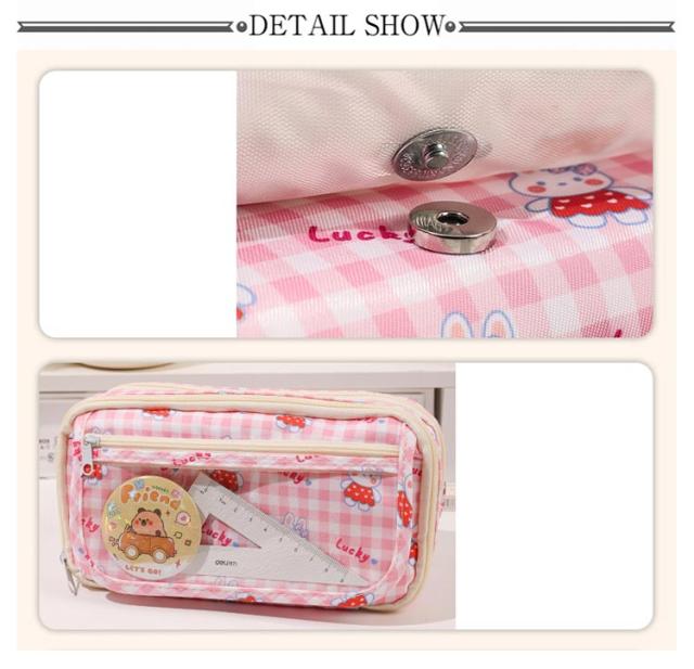 | 透明窓付きのデザイン、好きな芸能人や、アニメの写真 、缶バッジなど入れることができます。簡単に世界中一つだけ自分のペンケースは完成します。 毎日楽しく使えます。 レディース、メンズ、男女兼用、子供、小学生、中学生、高校生、大学生、大人にも適用します。 持ち手が付いているので持ち運びにも便利で、バッグなどからの取り出しにも便利です。 容量が大きく、散在するさまざまな小物を簡単に分類できます。小学生から高校生まで幅広く愛されるデザインです、自分で使うのがもちろん入学、進学、誕生日のプレゼントや入学プレゼントなどとしても最適で、きっと喜ばれます。 | |