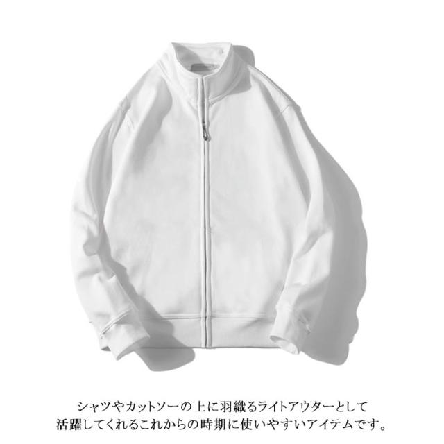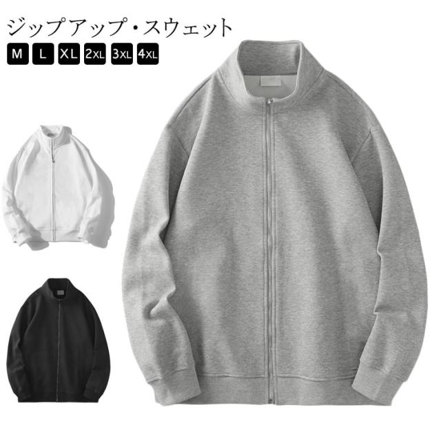 長袖 メンズ カジュアル ジップアップ スウェット ジャンパー シンプル 無地 スウェット 春 秋 トレーナー アウター ジャージ 上 フードなしパーカー トラックジャケット ゴルフ 男女兼用