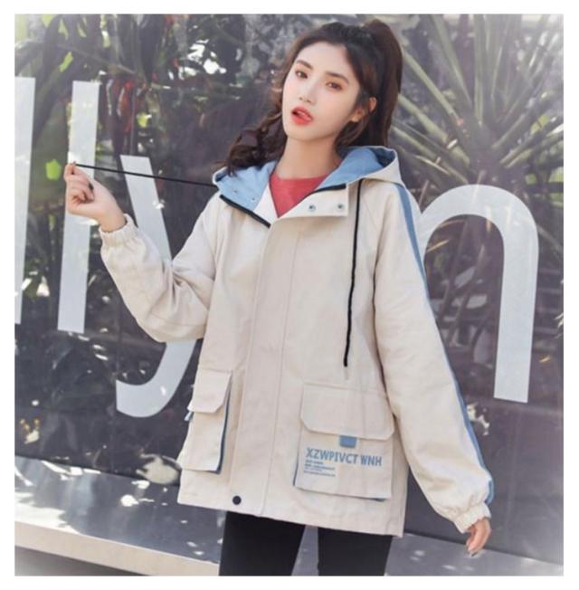ライトジャケット レディース ブルゾン ウインドブレーカー マウンテンパーカー 原宿系 春 ジャンパー ライトジャケット 秋 長袖 中学生 高校生 フード付き アウター 韓国ファッション ミドル丈 BF ゆったり 大きいサイズ 春服 秋物 スプリングコート 防風 おしゃれ 10代 20代