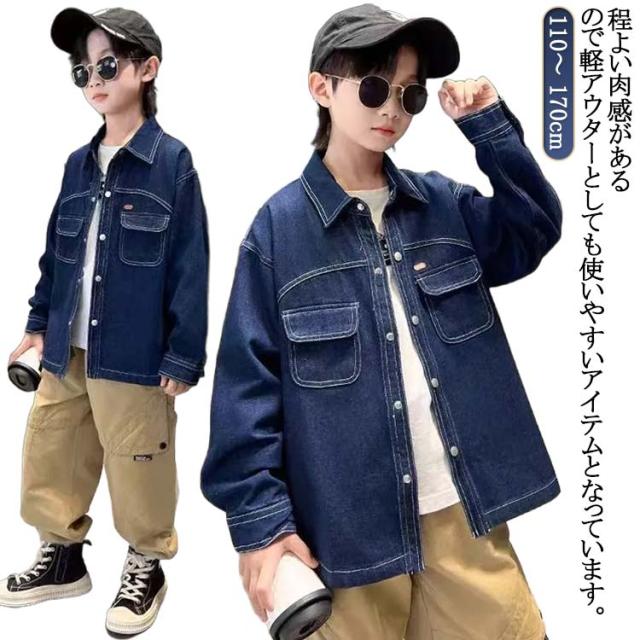 カジュアルシャツ 無地 男の子 羽織り キッズ 長袖 秋 トップス ジュニア お洒落 アウター 通学 通園 子供服 春物 秋物 韓国風 春 送料無料 デニム トップス デニム ジージャン ジュニア 小学生 キッズ服 ゆったり デニムシャツ 通学