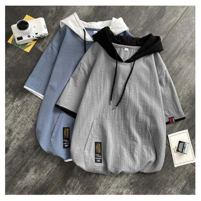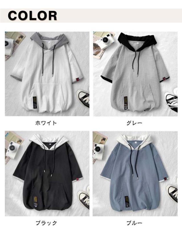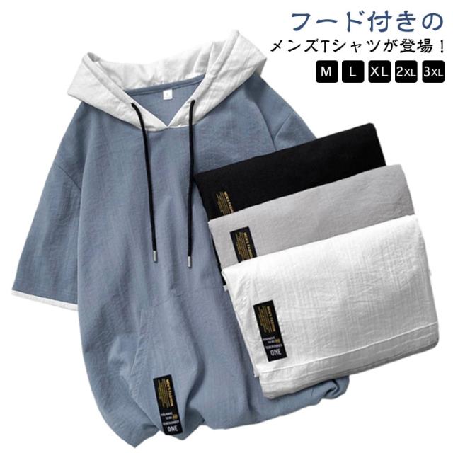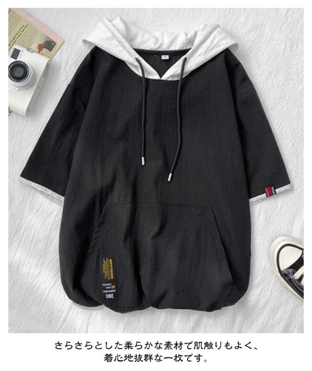 春 Tシャツ tシャツ フード付き 薄手 テーシャツ パーカー 半袖 半袖パーカー トップス 半袖 パーカーtシャツ 夏 フーディー 無地 プルオーバー メンズ ドロップショルダー リラックス ゆったり 体型カバー 男性 シンプル カジュアル ストリート 大きいサイズ