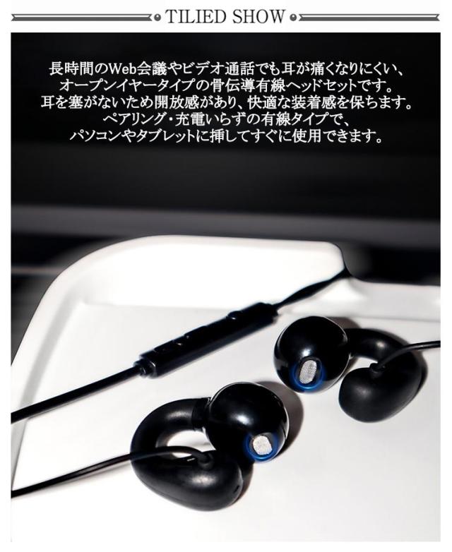 | 【有線骨伝導イヤホン】【マイク付き】【1.5m 2m 3m】 長時間のWeb会議やビデオ通話でも耳が痛くなりにくい、オープンイヤータイプの骨伝導有線ヘッドセットです。耳を塞がないため開放感があり、快適な装着感を保ちます。ペアリング・充電いらずの有線タイプで、パソコンやタブレットに挿してすぐに使用できます。 耳に入れることによる蒸れや疲労から耳を開放し、負担を抑えて快適に装着できるオープンイヤータイプです。 鼓膜をふるわせずに聞けるので、長時間使用しても耳が疲れにくく、耳をふさがないので圧迫感を感じません。 軽さとフィットデザインで長時間利用でも疲れません。 運動 サイクリング ジョギング 登山 ランニング 自転車 などに最適。 | |