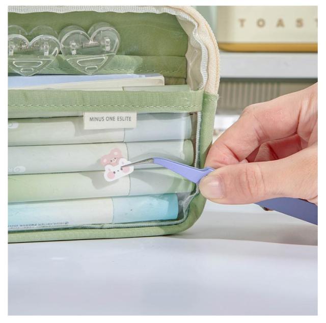 | 超軽量&大容量ペンケース。 透明だから中身が見える! トレンドの韓国っぽさたっぷりで可愛いペンケース コンパスや三角定規など、授業で使う文房具もすべて入る大容量! 成長に合わせて、マーカーやシャープペンをたっぷり収納したり、小物入れとして使っても◎ 本体には、持ち手付き。机のフックに掛けたり、教室を移動するときにも活躍します。 | |
