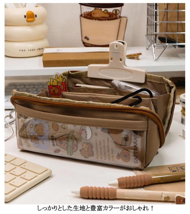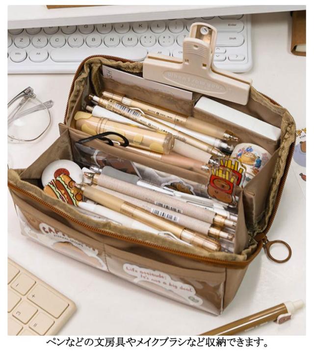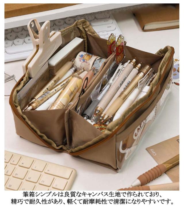 | 外側の透明ポケット部分にまでたっぷり収納できる、大容量ペンケース! トレンドの韓国っぽさたっぷりで可愛いペンケース 筆箱シンプルは良質なキャンバス生地で作られており、精巧で耐久性があり、軽くて耐摩耗性で清潔になりやすいです しっかりとした生地と豊富カラーがおしゃれ! ペンなどの文房具やメイクブラシなど収納できます | |