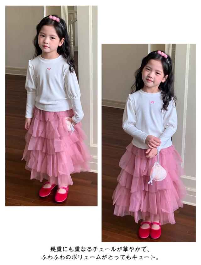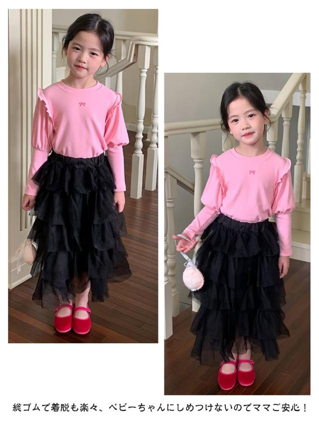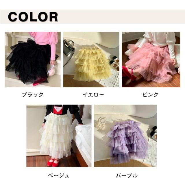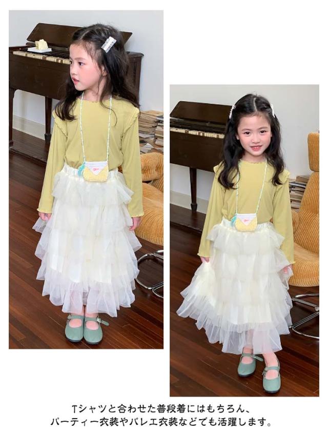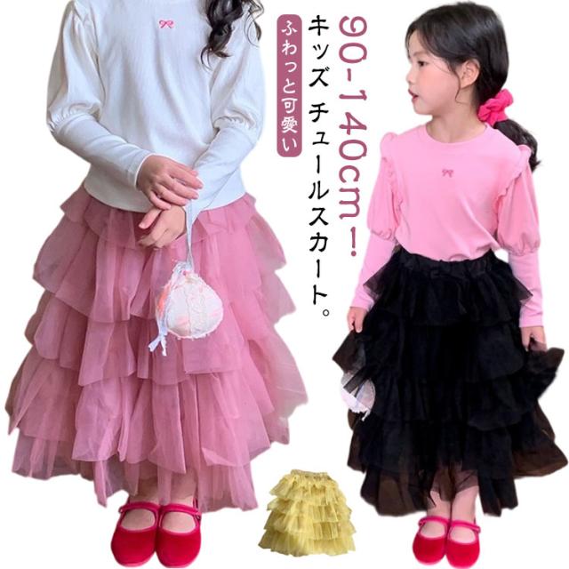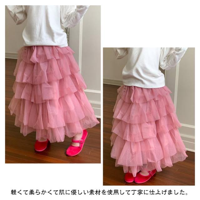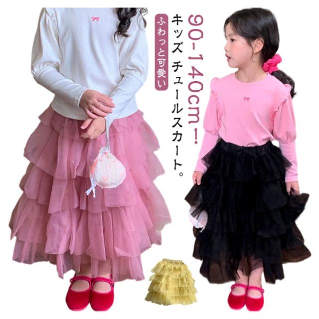 チュチュスカート 女の子 スカート キッズ チュールスカート チュールスカート ガーリー ロングスカート 演奏会 結婚式 記念日 ロング丈 子ども用 ボリューム ふわふわ かわいい フレアスカート 子供 フリル 無地 春 夏 秋 90 100 110 120 130