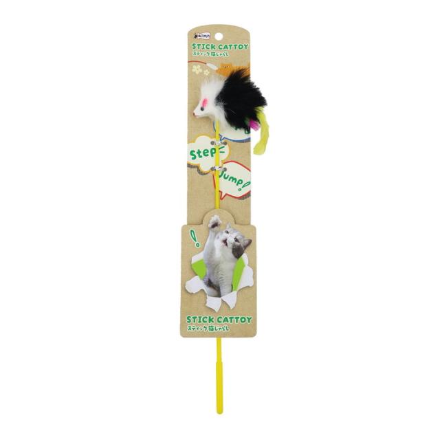 遊び方いろいろ猫じゃらし!先についたふわふわのねずみ型おもちゃを、足元でちょこちょこ動かしたりして愛猫とコミュニケーションをとりましょう!