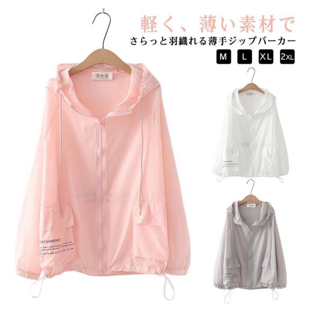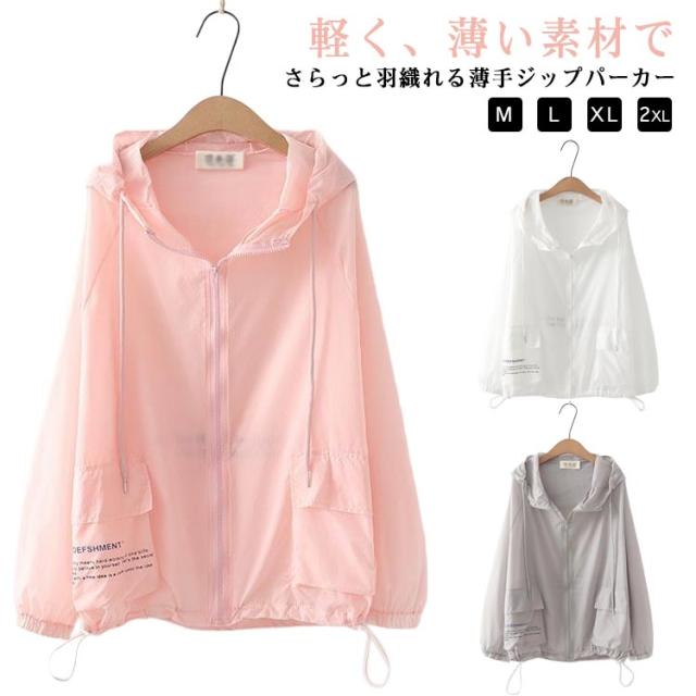 長袖 パーカー 薄手 レディース フルジップパーカー レディース 紫外線対策 春夏 ジャケット フード付き ラッシュパーカー ライトジャケット トップス 涼しい アウター 羽織り 自転車