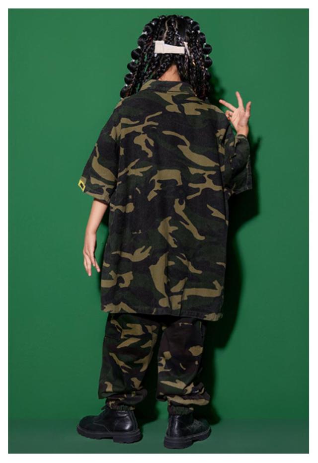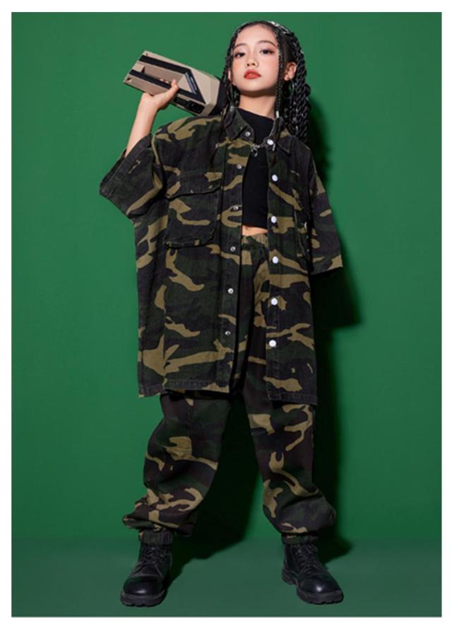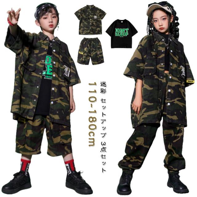 迷彩セット 迷彩 セットアップ 女の子 トップス 柄 jazz ダンス衣装 衣装 パンツキッズ 男の子 ダンス シャツ hiphop 迷彩セット かっこいい 短パン ダンスウェア B系 ヒップホップ ステージ衣装 ガールズ K-POP ジャズダンス 発表会 演出服
