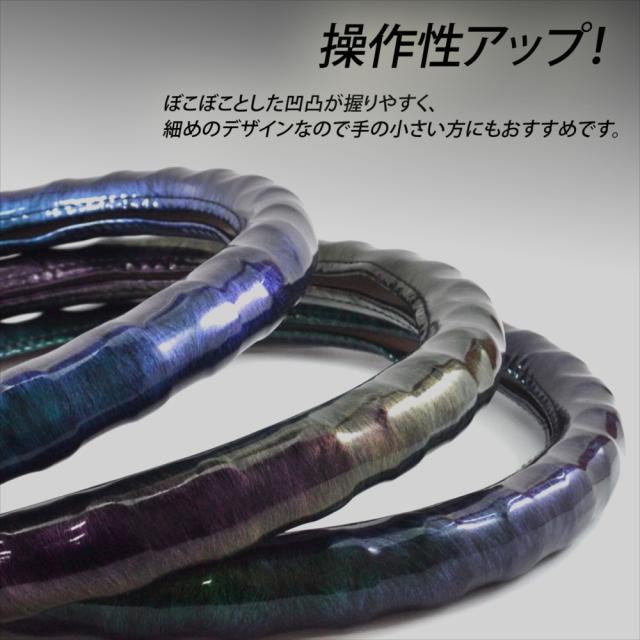 ハンドルカバー 軽自動車 ステアリングカバー Sサイズ Mサイズ ミニバン ワンボックス 普通車 乗用車 波デザイン オーロラカラー スエード調 カーボン調 光沢 トラック用 大型車 ML LM 2HS 2L キャンター エルフ レンジャー 日野 ふそう いすゞ UD トヨタ 日産 車 ハンドル