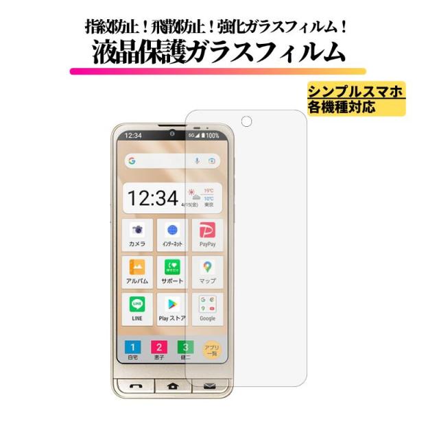 シンプルスマホ ガラスフィルム 強化ガラス 保護フィルム 全面保護 高透過 硬度9H 飛散防止 衝撃吸収 指紋防止 日本旭硝子 Softbank ソフトバンク シンプルスマホ4 704SH シンプルスマホ5 A001SH シンプルスマホ6 シンプルスマホ7