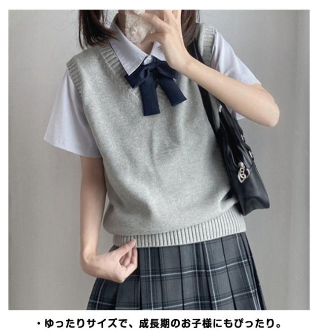 | ・Vネックデザインが首元をすっきり見せ、制服のワイシャツやブラウスとの重ね着に最適です。 ・無地でシンプルなデザインだから、春夏は薄手のシャツと、秋冬はセーターの上からと1年を通して大活躍。 ・バランスの良い長さで、すっきりとしたシルエットに。 ・ゆったりサイズで、成長期のお子様にもぴったり。 ・中高生はもちろん、大学生や大人のJKファッション愛好者にもおすすめです。 | |