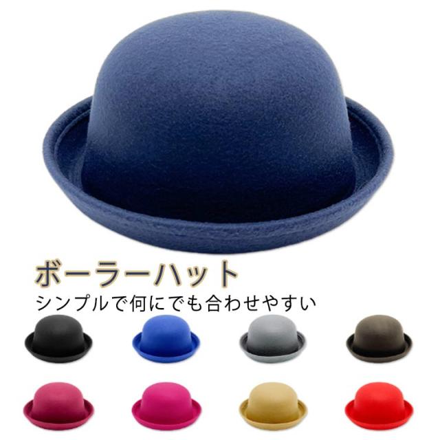 子供用 無地 子供用 レディースハット シンプル ボーラーハット つば付きハット 帽子 キッズハット ボーラー ダービーハット フェルトハット メンズ レディース 帽子 ぼうし 男の子 女の子 フェルト帽 親子帽子 FELT
