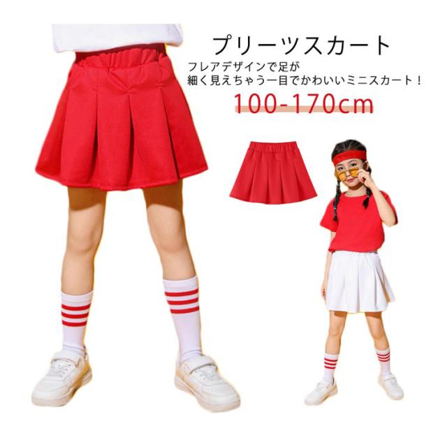 秋 ストレッチ フレアスカート ミニスカート 女の子 無地 子供服 ヒップホップ プリーツスカート レッド ホワイト キッズ チア チアリーダー ジュニア チアガール スカート ガールズ ダンス衣装 春 夏 プリーツスカート 冬 ジュニア 120cm 130cm 140cm 150cm 160cm