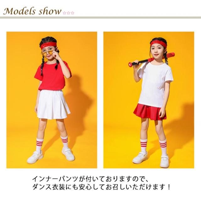 | プリーツスカート 100-170cm フレアデザインで足が細く見えちゃう一目でかわいいミニスカート! インナーパンツが付いておりますので、ダンス衣装にも安心してお召しいただけます! | |