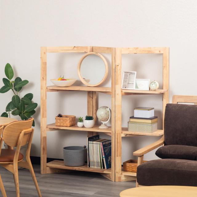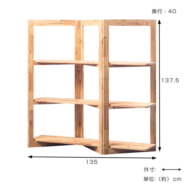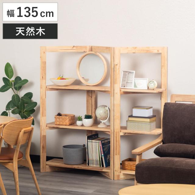 パーテーション風 ジグザグシェルフ 幅135cm ラバーウッド 無垢材 ( ジグザグ シェルフ オープンラック 天然木 NATURAL SIGNATURE 木製 シンプル 飾り棚 ラック 棚 間仕切り )