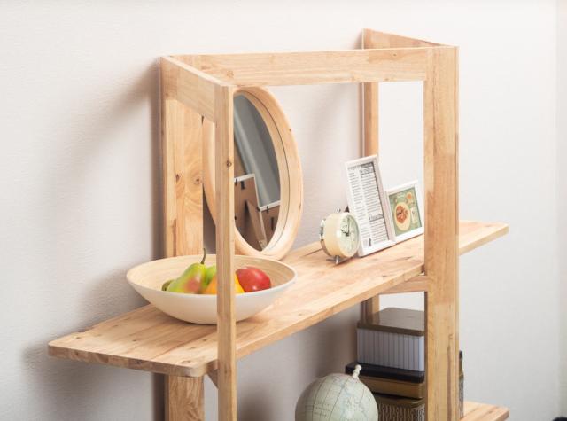 滑らかな手触りで、温もりのある印象の天然木ラバーウッドの無垢材をふんだんに使用したジグザグシェルフです。収納としても、お気に入りを飾るディスプレイラックとしても使い勝手の良いシンプルなデザインです。