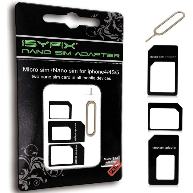 iSYFIX Nano SIMカードアダプターキットは、ナノSIMカードをマイクロSIMまたは標準SIMカードに変換し、マイクロSIMカードをあらゆる携帯電話やタブレット用の標準SIMカードサイズに変換するのに役立ちます。