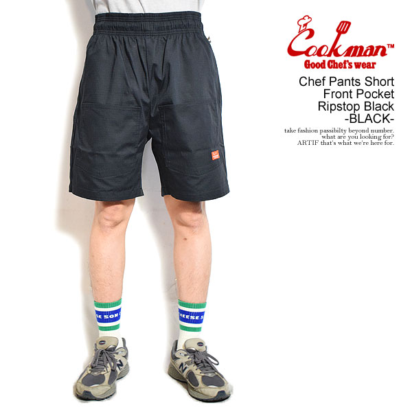 COOKMAN クックマン Chef Pants Short Front Pocket Ripstop Black -BLACK- メンズ ショートパンツ シェフパンツ atfpts