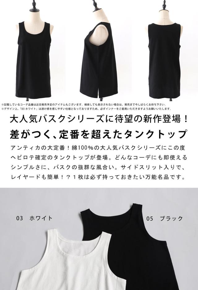 再入荷予定有!タンクトップ レディース 綿100 バスク素材 ロング丈・(80)メール便可