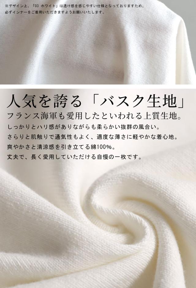 上質な綿100%のバスク生地は、ほどよい厚みとさらりとした肌ざわりで、デイリー使いにぴったり。