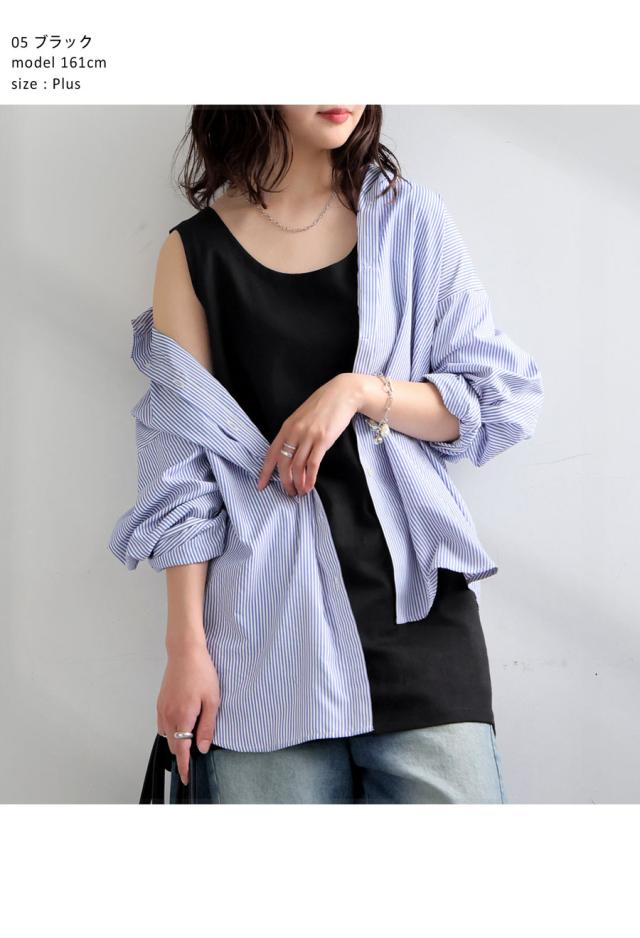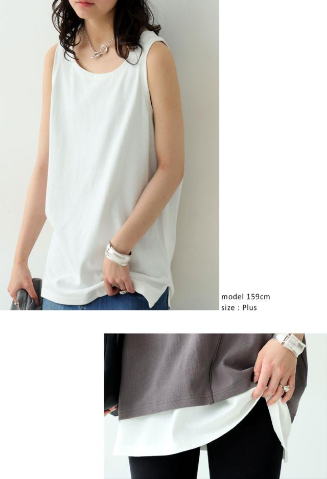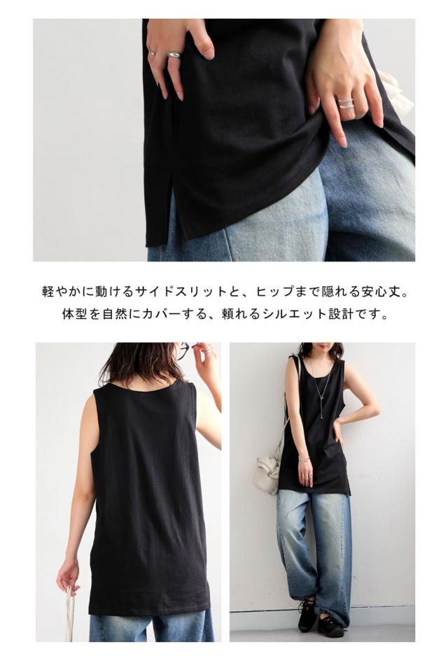 na-00491 重ね着 大人カジュアル 体型カバー ヒップ隠し 着回し 春夏秋 ロングシルエット レイヤードコーデ インナー使い シンプルコーデ ストレスフリー ノースリデザイン 抜け感