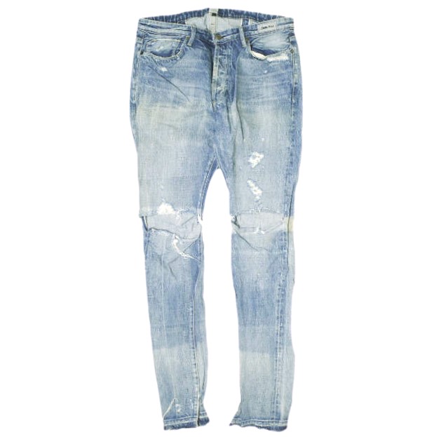TERRA NULL テラヌル ハードクラッシュ加工 スリムセルビッチデニムパンツ 32 Indigo ダメージ加工 ジーンズ ボタンフライ ボトムス