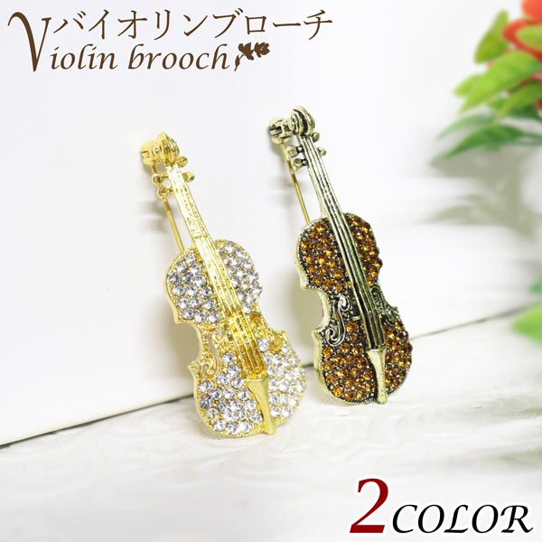 送料無料 2カラー バイオリン ブローチ モチーフ 楽器 バッジ アクセサリー ジュエリー キラキラ ビジュー 個性 スタイル 弦楽器 コーディネート 音楽 クラシック