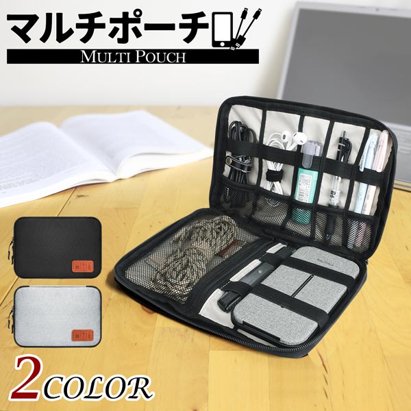 送料無料 2カラー マルチポーチ 収納 ポケット 多数 ケーブル アクセサリー 旅行 出張 整理整頓 シンプル スタイリッシュ メッシュ 軽量 耐久性 持ち運び 電子機器 デスク オフィス