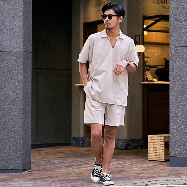 同素材のショートパンツと合わせてセットアップでの着用もオススメ。