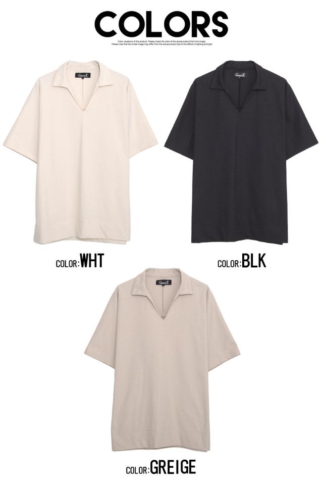 ポロシャツ メンズ 半袖 ブランド おしゃれ 大きいサイズ トップス カットソー スキッパー襟 無地 シンプル オーバーサイズ ゆったり リラックス ストレッチ 伸縮性 ホワイト ブラック グレージュ 白 黒 CavariA 服 春 夏 春服 夏服 男性 男 20代 30代 40代 [CAHP25-19]