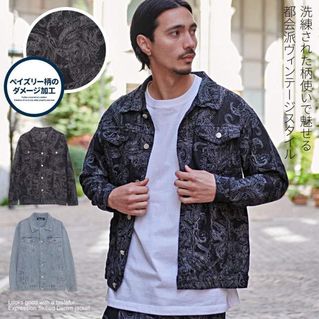 デニムジャケット Gジャン メンズ ブランド おしゃれ カジュアル ペイズリー ヴィンテージ ビンテージ ダメージ加工 アウター ライトアウター 大人 ブラック ブルー M L 大人 ファッション ストリート ストリート系 ストリートファッション モード 韓国 韓国系 韓国ファッション 下北沢 下北系 古着 古着系 男性 男 父の日 父の日ギフト 父の日プレゼント 20代 30代 40代 ファッション メンズファッション 東京 プレゼント 誕生日 記念日 贈り物 ギフト配送について